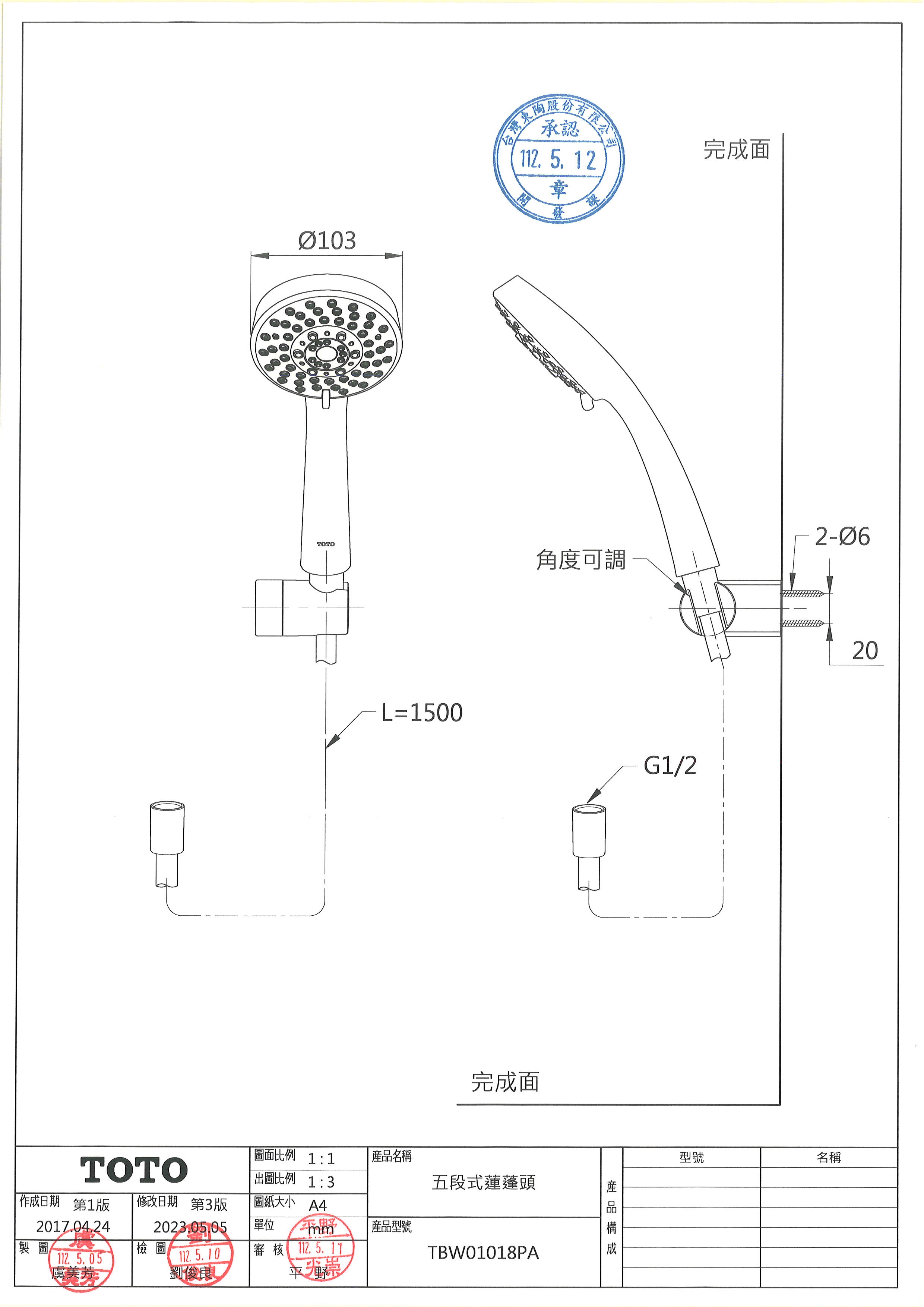 TOTO五段式蓮蓬頭