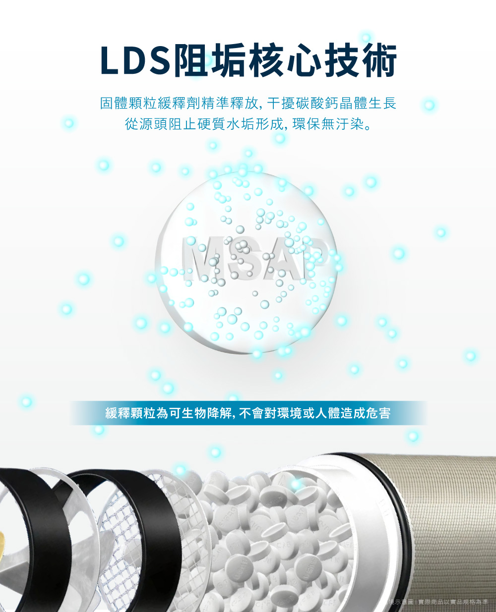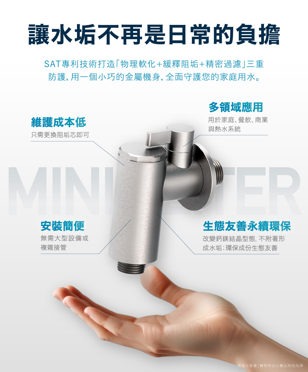 2. 三重防護:同時具備「物理軟化 + 緩釋阻垢 + 精密過濾」,全面守護家庭用水。